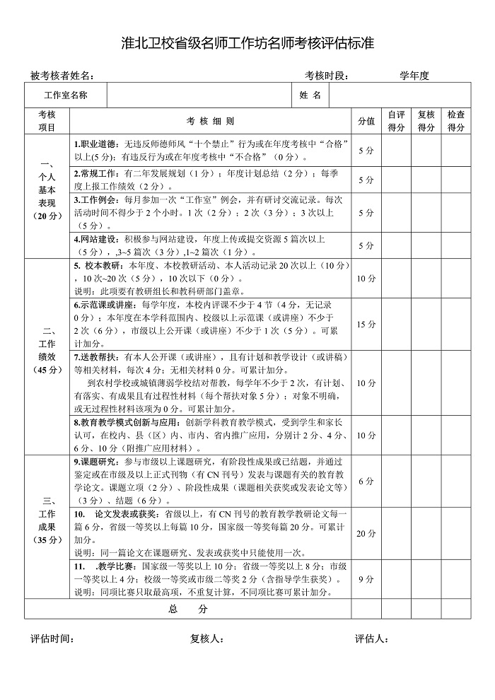 下一条:淮北卫校省级名师工作坊首席名师考核评估标准
