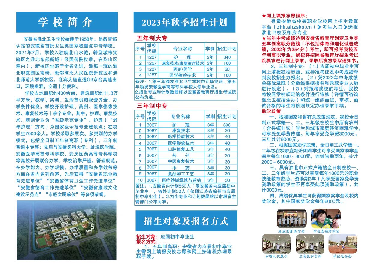 版权所有:安徽省淮北卫生学校 / 地址:安徽省淮北市烈山区沱河东路 / 招生电话:0561-6062440、6062030 / 校办公电话:0561-6062754