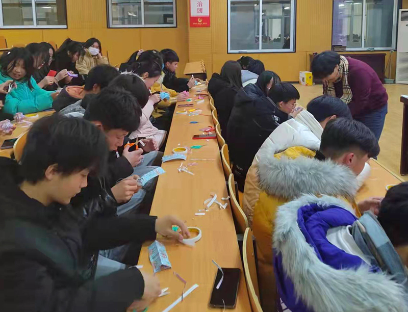 12月30日,在2022年元旦来临之际,淮北卫生学校组织学生开展手工制作灯笼迎新年活动。