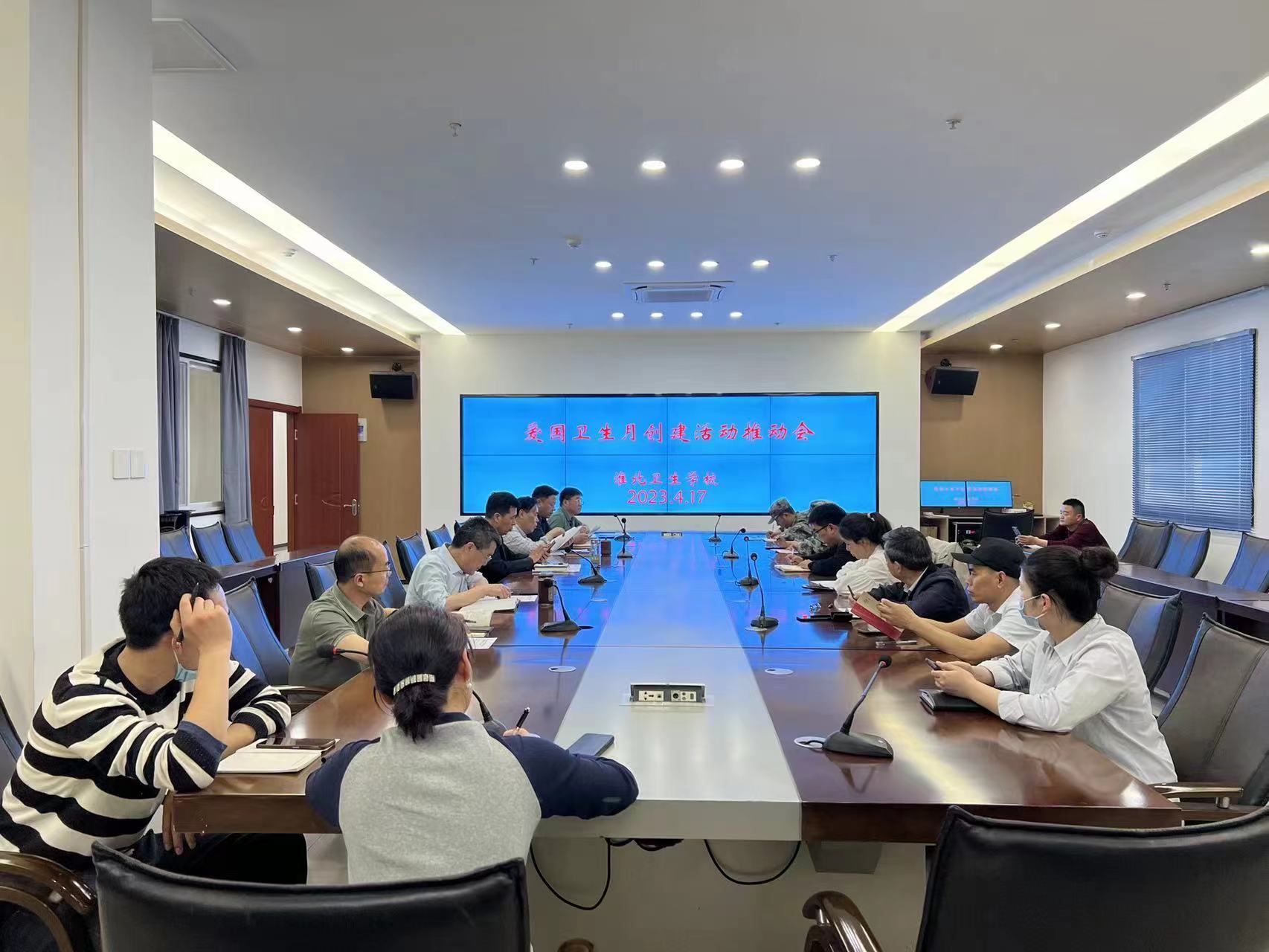 2023年4月17日下午,淮北卫校爱国卫生月创建活动推动会召开。校领导、相关科室负责人、保洁公司、教官队代表、食堂各窗口负责人近20人参加了会议。