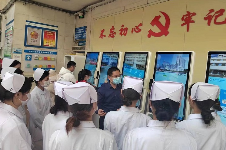 2023年5月9日下午,淮北卫生学校组织即将踏上实习岗位部分学生赴淮北市人民医院开展志愿者服务活动。弘扬南丁格尔“不畏艰险、甘于奉献”的精神,强化学生对劳动流程、劳动标准、劳动检查等制度的学习与内化;通过劳动实践提升学生职业精神、专业技能、创新创业能力等,促进学生劳动习惯、劳动能力与劳动品质的形成与“固化”。志愿服务队同学在副校长陈鹏等的带领下走进医院参观学习,义务劳动,指导门诊病人使用自助机,指引入院人员按流程办理入住院手续,帮助老年患者科学就医。