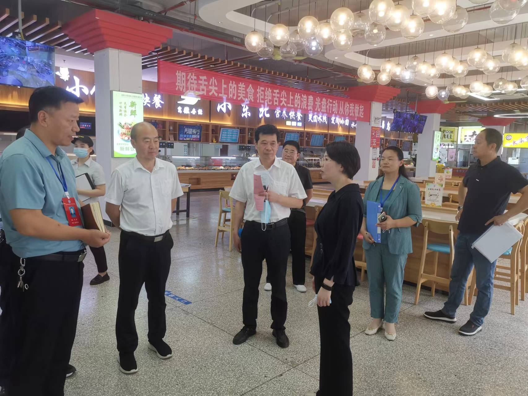 现场, 顾汕竹详细了解在校师生的用餐人数、用餐时间及供需状况,深入食堂大厅、后厨、仓库、留样间等区域,现场查看环境卫生、原材料管控、食品贮存、加工过程、餐具消毒、食品留样、从业人员健康管理等环节,对学校食品安全工作给予肯定并提出改进意见和建议。