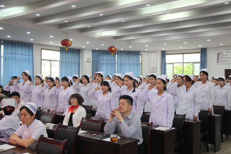 在护理职业技能展示环节,护士生动作协调流畅,表情微笑自然,表现形式新颖,自成一体。在“燃烛授帽”仪式环节,医院护理专家和100名护士生代表依次走上舞台,护士生们共同宣誓了《医护生誓词》,把此次活动推向高潮。洁白的燕帽、燃烧的红蜡烛、铿锵的誓言,生动再现了护士日常护理的工作情境,在昼夜辛劳中呵护生命,在责任中把握生命的轮回,绽放着人世间最美丽的芳华,充分展现了白衣天使们团结向上的进取意识、操作精湛的护理技术和热爱护理职业的精神风貌。随后,市、县医院护理专家、护理专业师生代表依次发言,畅想护理职业理论学习、临床实践和执业理想的人生感悟,明确护士职业的人生定位,诠释护士职业的繁锁艰辛、无私奉献的美好神圣,抒发了做好护理工作的信心与决心。同时,大会还对护理专业优秀实习生进行了颁奖表彰。