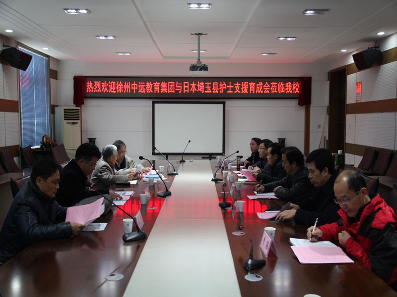 12月12日上午,徐州中远教育集团与日本埼玉县护士支援育成会一行5人莅临淮北卫校,就涉外护理专业合作共建等事宜举行了座谈并参观了淮北卫校实训室,市职教办副主任王本新、卫校相关领导和主要科室负责人出席了座谈。