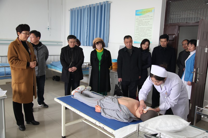 陈英一行深入到淮北卫校,在党总支书记、校长孙学华等校领导陪同下,察看了学校大门、学生公寓、食堂、技能实训室、无菌操作室等地,对于学校办学环境给予了关注,在护理实训室,详细了解了护理技能大赛筹备情况,现场观摩了心肺复苏比赛的演练,并对同学娴熟的技能操作报以掌声。随后,陈英一行来到学校会议室,听取淮北卫校办学情况汇报。