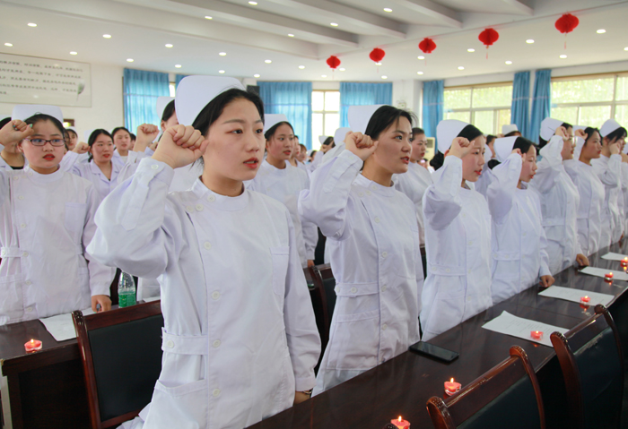 此次活动由校教务处牵头,团委、学生科、办公室等科室协同配合,并按照活动方案要求共同组织实施。在活动现场护理礼仪展示环节,医护生动作协调流畅,表情微笑自然,表现形式新颖,生动再现了护士日常打针、铺床、输液和护理病人的工作情境,充分展现了护理职业的天使风采。在“燃烛授帽”仪式环节,护理专家和45名医护生代表依次走上舞台,医护生们共同宣誓了《医护生誓词》,庄严的“燃烛授帽”仪式正式拉开序幕。洁白的燕帽、燃烧的红烛、铿锵的誓言,生动再现了护士日常护理的工作情境,在昼夜辛劳中呵护生命,在责任中把握生命的轮回,绽放着人世间最美丽的芳华,充分展现了白衣天使们团结向上的进取意识、操作精湛的护理技术和热爱护理职业的精神风貌。随后,护理专业师生代表依次上台发言,畅想护理职业理论学习、临床实践和执业理想的人生感悟,明确护士职业的人生定位,诠释护士职业无私奉献的神圣使命,抒发做好护理工作的信心与决心。大家还共同欣赏了护理专业师生自编自演的歌曲、舞蹈、诗朗诵等节目,最后在现代舞《白衣天使》旋律中,圆满结束护士节系列活动。