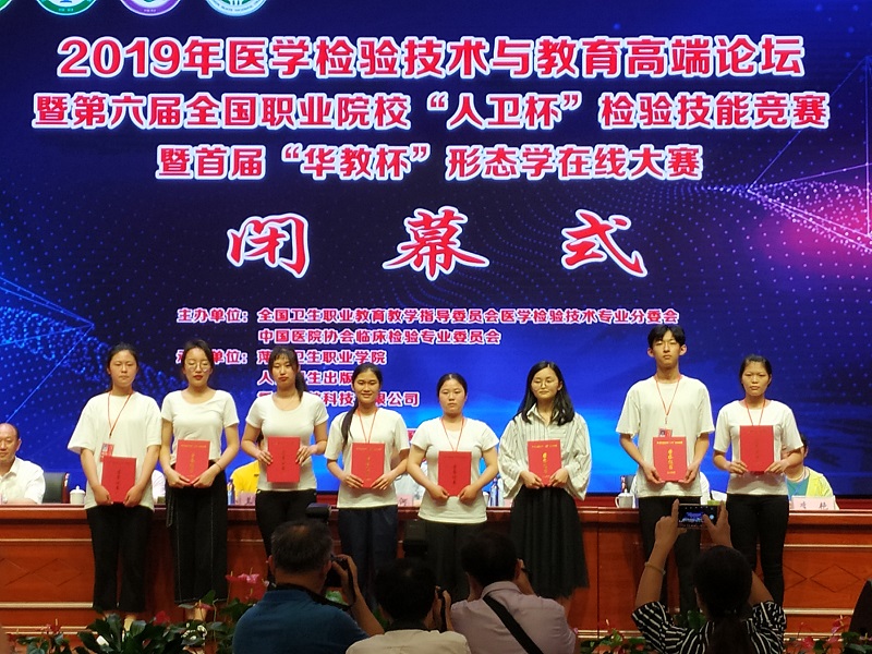 本次全国职业院校检验技能竞赛是我国职业教育的专业大型赛事,经过多年的探索与实践,本项竞赛已逐渐发展成了我国职业教育中检验类技能比赛的“金牌”和“顶级”赛事,吸引了来自全国各地的本科、高职和中职学校的115支代表队、346名选手参加角逐。本次竞赛设置了形态学检验和白细胞计数和临床应用、细菌分离培养与格兰染色、血糖测定及临床应用、乙肝表面抗体检测等操作赛项,每个项目总分为100分,另设人文素养10分,考试的总成绩为选手参加所有比赛项目成绩的总和,设置了个人形态学单项奖、个人综合奖和团体奖等奖项。