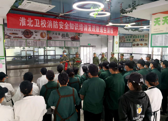11月8日,淮北卫生学校组织餐饮服务人员开展消防安全知识培训及疏散逃生演练。