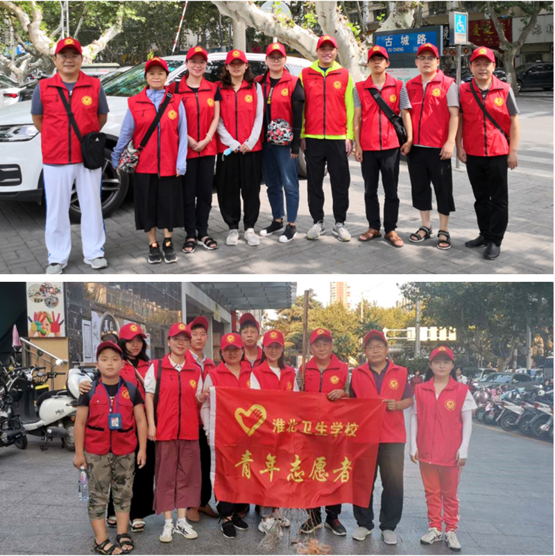 淮北卫校通过宣传志愿服务精神,充分发挥党支部的引领作用,党员同志积极报名参与,围绕“垃圾烟头捡一捡,乱张乱贴清一清,乱停乱放摆一摆,排队乘车引一引,路口秩序维一维,违规养犬劝一劝,宣传问卷发一发,喜人变化说一说”等“八个一”内涵要求,分工协作、各负其责。在志愿活动中,志愿者充分发挥“不怕苦,不怕脏”精神,做红绿灯路口的文明劝导者,劝导行人遵守交通规则,不要闯红灯,辅助老人安全过马路;做道路两旁的环境美化者,捡拾清理垃圾,把非机动车辆摆放整齐;做文明城市创建的宣传践行者,积极向行人及商铺宣传文明城市创建的重要性,劝导和帮助沿街商户清理门前垃圾;做疾病预防保健的健康使者,志愿队员结合自身具备医学知识,对身患疾病、行动不便的老人进行康复知识宣传普及等,赢得市民群众的频频点赞和广泛好评。