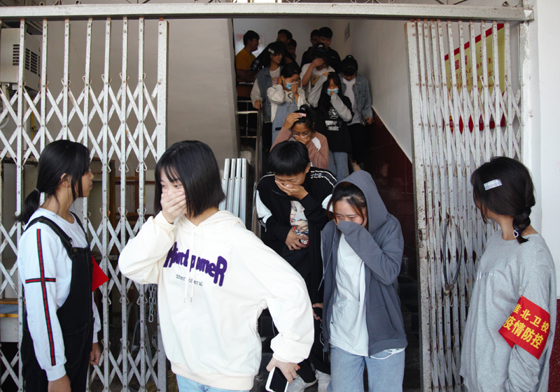 9时18分,随着一阵急促的防空警报声响起,淮北卫校纪念“九一八”防空防灾应急疏散演练活动正式开始。各班学生在班主任、任课老师及各楼层岗位负责人的指导下,沿着安全通道楼梯口快速有序疏散,迅速撤离到安全区域。随即各班清点人数,迅速向学校领导汇报。整个过程紧张有序,特别是学生做到迅速、镇定、冷静,捂鼻猫腰,相互关爱,在规定时间内顺利完成此次应急疏散演练任务。