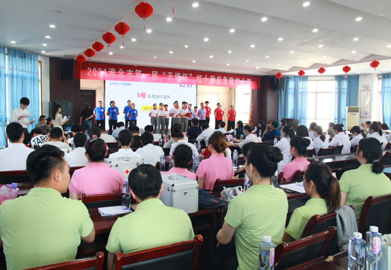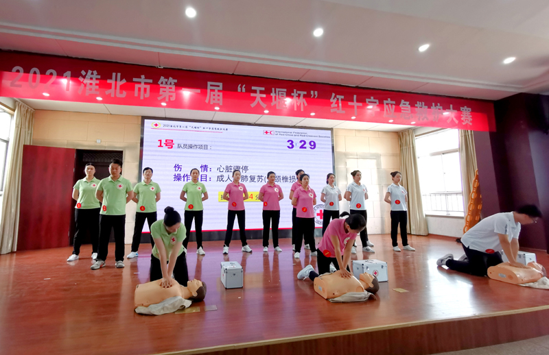 5月30日,由淮北市红十字会联合市文明办、市教育局、市应急管理局、市卫生健康委共同主办,淮北卫生学校承办的淮北市第一届“天堰杯”红十字应急救护大赛在淮北卫校举办。大赛主题为“关爱生命、救在身边”,来自全市7支代表队参加比赛。安徽省红十字会赈济救护部部长张本该、省红十字应急救护培训指导中心负责人以及淮北市红十字会、市文明办、市教育局、市应急管理局、市卫生健委有关负责人等出席活动。