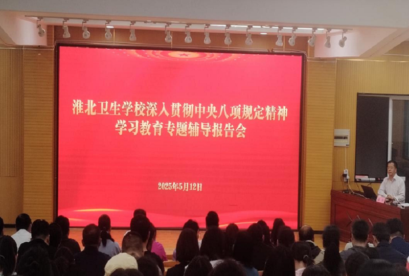 为深入学习贯彻习近平总书记关于作风建设的重要论述,进一步推动中央八项规定精神落地生根。2025年5 月 12 日,学校举办了深入贯彻中央八项规定精神学习教育专题辅导报告会,淮北职业技术学院纪委宣讲团成员院人文社会科学系主任赵冬同志应邀来校开展“送纪上门”宣讲活动。校领导班子成员、全体教职工参加了此次会议。