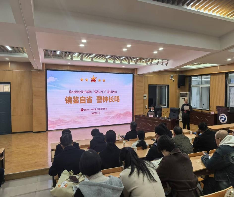 为深入贯彻党的二十届四中全会精神,持续加强党风廉政建设,筑牢党员纪律规矩意识。2025年11月21日,淮北卫生学校特邀淮北职业技术学院纪委宣讲团成员、院纪委委员、学工处副处长刘春丽来校开展“镜鉴自省 警钟长鸣”送纪上门宣讲活动,学校全体党员齐聚阶梯教室,在纪律教育学习中深化思想洗礼、强化党性锤炼。