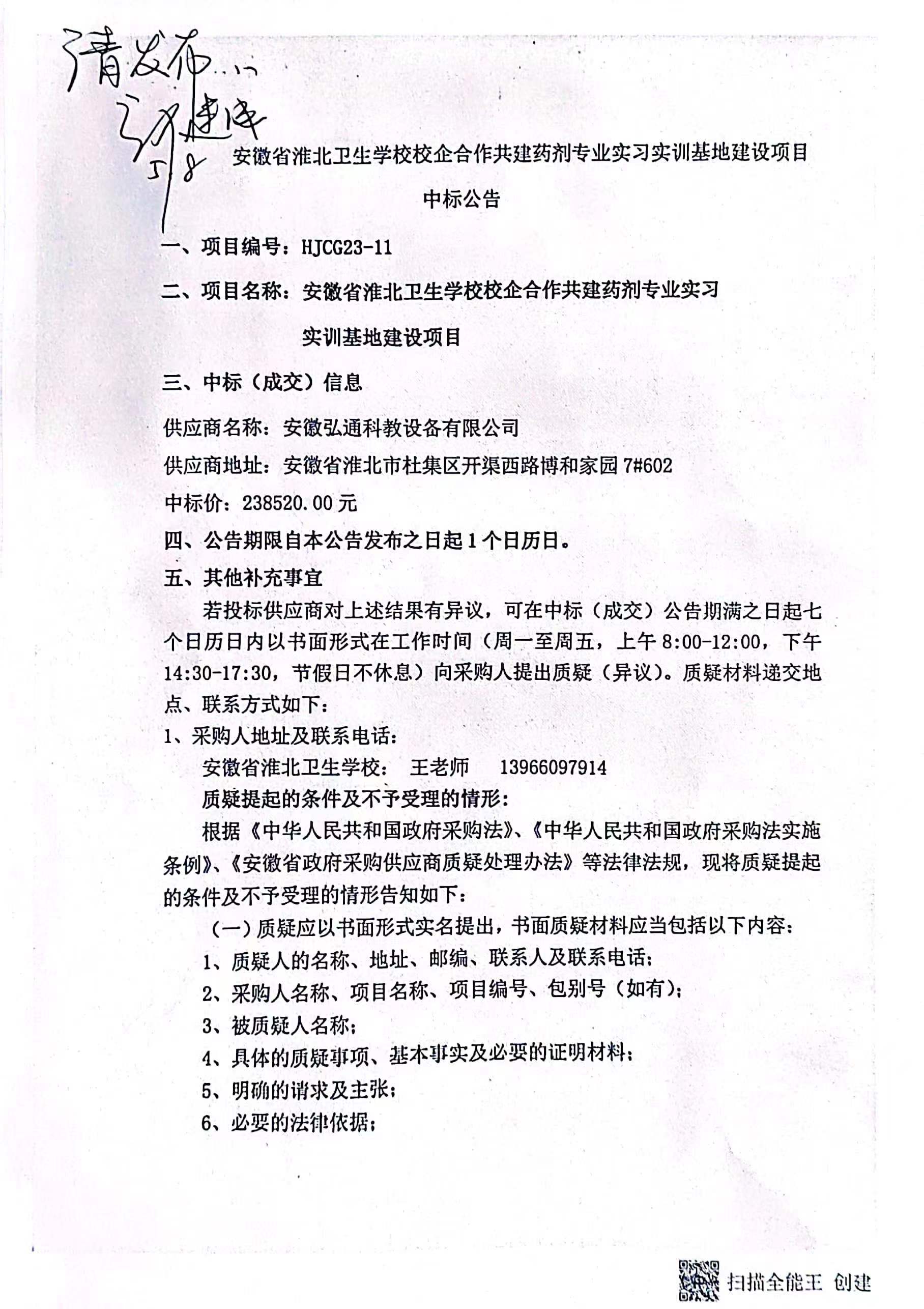 下一条:安徽省淮北卫生学校“医学检验技术设备”采购项目中标公告