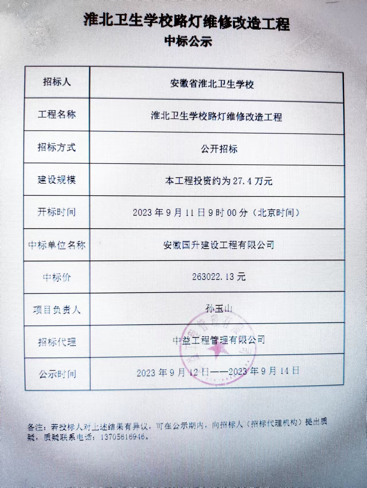 下一条:淮北卫生学校路灯维修改造竞争性磋商公告