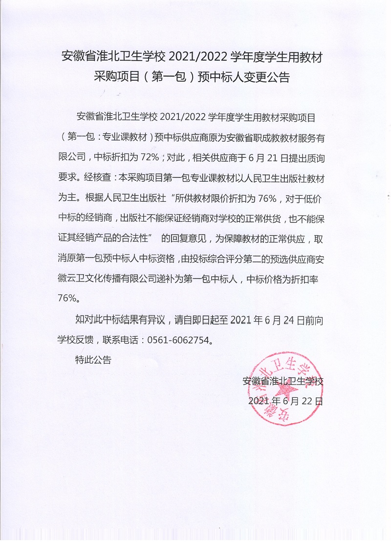 上一条:淮北卫生学校2021年实训室耗材招标公告