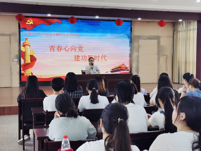 6月30日下午,淮北卫生学校“青春心向党,建功新时代”主题团课在多功能报告厅如期开展,各班级团支部干部及优秀团员青年参加,校团委副书记陆晨晨担任主讲。