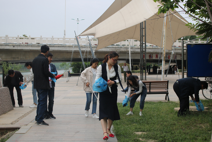 濉河公园沿濉河而建,是周边居民健身休闲的重要场所,水、石、绿地、花草层次有序,是生态文明建设的重要名片,已成为淮北濉溪一道亮丽的风景线,这样美丽的环境需要大家共同维护。淮北卫校学生党支部、团委结合主题党日、团日活动契机,组织带领党员、学生开展志愿实践服务活动。师生拿着垃圾夹和垃圾袋走出校园,沿新濉河公园大桥至王桥段沿河堤捡拾绿化树林带中的烟头及河岸边的塑料垃圾等。活动中,党员及学生不怕脏、不怕累,结伴或独行,仔细拾捡地面上、草丛中、树林里的塑料袋、碎纸屑、矿泉水瓶等,不放过任何一个死角。经过一个多小时的志愿劳动,垃圾收集袋满了,河堤环境干净美丽了。