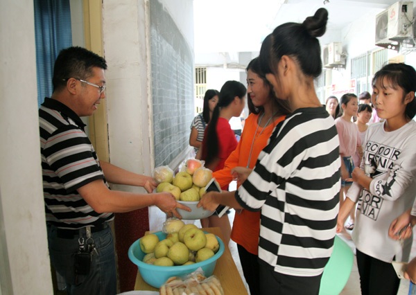 9月14日下午,淮北卫校校园内欢声笑语。原来,在中秋佳节来临前,该校为留校学生发放中秋月饼、苹果和酥梨。