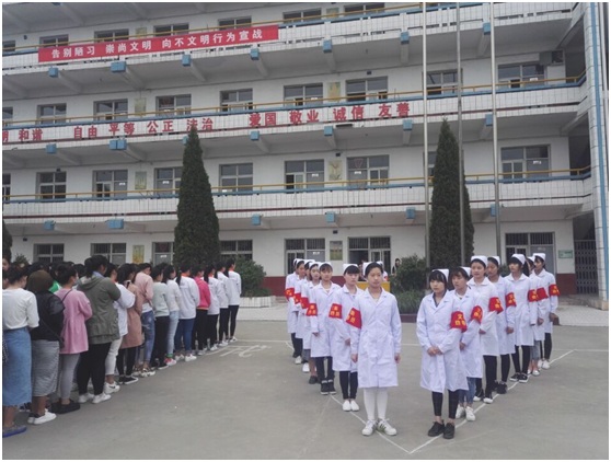 为培育和践行社会主义核心价值观,提升学生的文明素质修养,我校于5月9日早晨通过升旗仪式,开展“告别陋习 崇尚文明 向不文明行为宣战”活动,通过国旗下讲话《文明让生活更美好》以及文明劝导员代表的倡议,引导学生通过对校园不文明行为与现象反思,号召同学们向不文明行为宣战,文明劝导员代表组成了“V”字型,彰显文明必胜,呼吁青年学生养成文明习惯和高尚情操,共创和谐、文明的校园学习、生活环境。