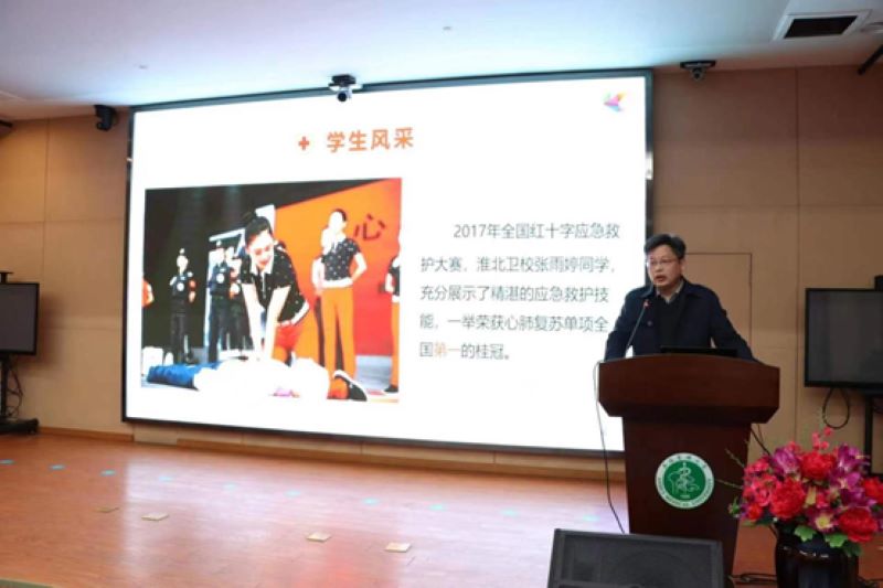 淮北卫生学校高度重视红十字工作,自2017年11月学校红十字会成立以来,认真贯彻落实习近平总书记关于红十字事业重要指示精神,紧紧围绕 “立德树人”根本任务,以践行社会主义核心价值观为主题,将红十字青少年工作与学校德育工作、生命健康教育相结合,广泛开展各种形式的救护知识培训,为维护师生群众生命健康安全筑起一道防护墙,提升区域辐射力和社会影响力,积极弘扬 “人道、博爱、奉献”红十字精神,真正使“中国红十字会之花”在皖北落地生根。