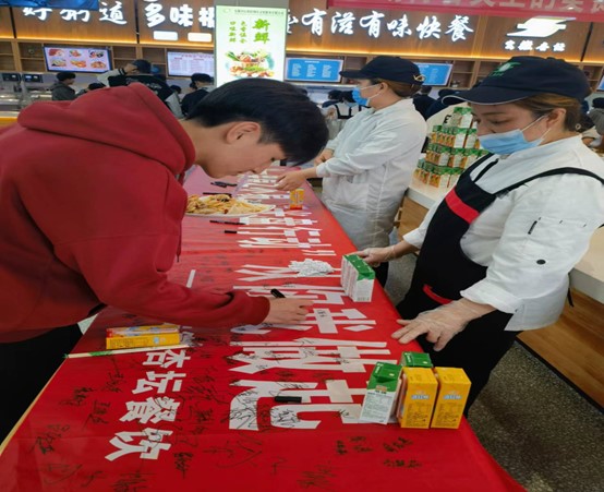 历览前贤国与家,成由勤俭败由奢。为弘扬中华民族勤俭节约的传统美德, 倡导文明餐桌理念,号召广大师生从自身做起, 厉行节约、反对浪费?;幢蔽郎6啻氩⒕?,深入开展“厉行节约 反对浪费”主题教育系列活动,通过电子屏、宣传栏、悬挂横幅标语、张贴勤俭节约文明用餐提示语、播放宣传片、举办培训讲座、召开主题班会、开展反对浪费倡议及签名活动等,拓展宣传的广度、深度、精度,营造勤俭节约良好校园氛围,引导广大师生以勤养志,以俭修德,科学消费、理性消费,自觉养成文明就餐、合理点餐、适度消费的良好习惯,切实行动起来,自觉践行“光盘行动”,杜绝“舌尖上的浪费”,让“舌尖上的文明”成为菁菁校园中的一道亮丽风景线。