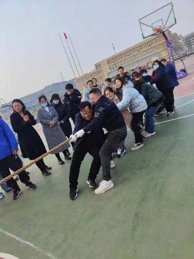 本次活动我们邀请男教职工陪女教职工一起过节,全校百余名教职工参加了此次活动。比赛共分为八个队,采取男女混合参赛制,每队7个女教职工3个男教职工。参赛的全体教职工们个个精神饱满、斗志昂扬、齐心协力。场上队员个个紧握绳子,重心下移,凝神聚力,拼尽全力;场下啦啦队员们也是激情高涨,呐喊声、欢呼声、快乐声不绝于耳。每一位教职工脸上洋溢着坚定、幸福和欢乐的笑脸。