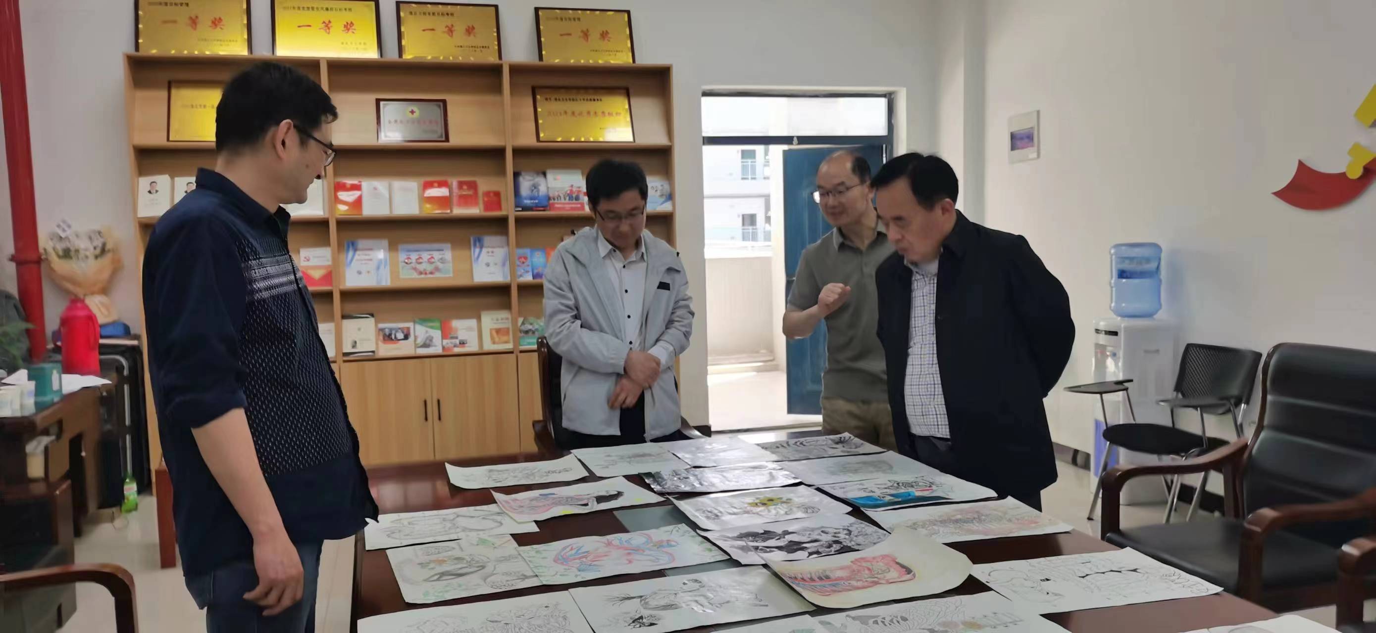本次解剖学绘图大赛作品评审会安排在教务支部会议室进行,经层层选拔,共收到优秀作品82副。参加本次比赛的评委有:淮北职业技术学院医学系查道德主任、孙胜利副书记、卫校副校长王明灿、教务主任李强等。