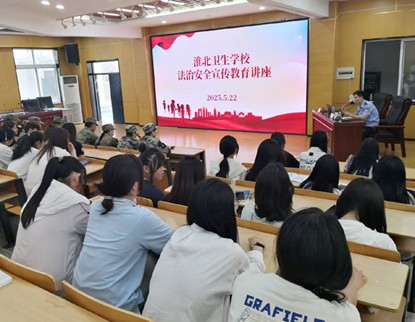2025年5月22日,淮北卫生学校举办“携手关爱 共护未来”主题法治安全教育讲座,普及《未成年人保护法》等法律法规,增强法治安全意识,提高安全防范能力,护佑学生健康成长。