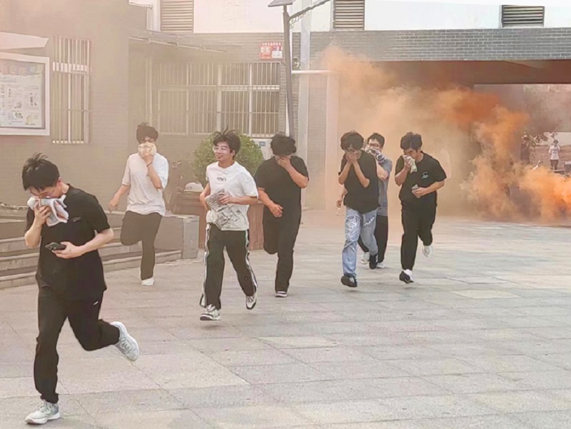 2025年5月27日,随着急促的警报响起和浓密的烟雾飘起,淮北卫生学校消防安全应急演练拉开帷幕,200余名学生在应急救援人员的指挥引导下从宿舍A、D栋楼撤出,有秩序地按照指定路线迅速撤离至安全避险区,依次开展疏散逃生、正确使用灭火器、应急救护等演练,达到预期效果。
