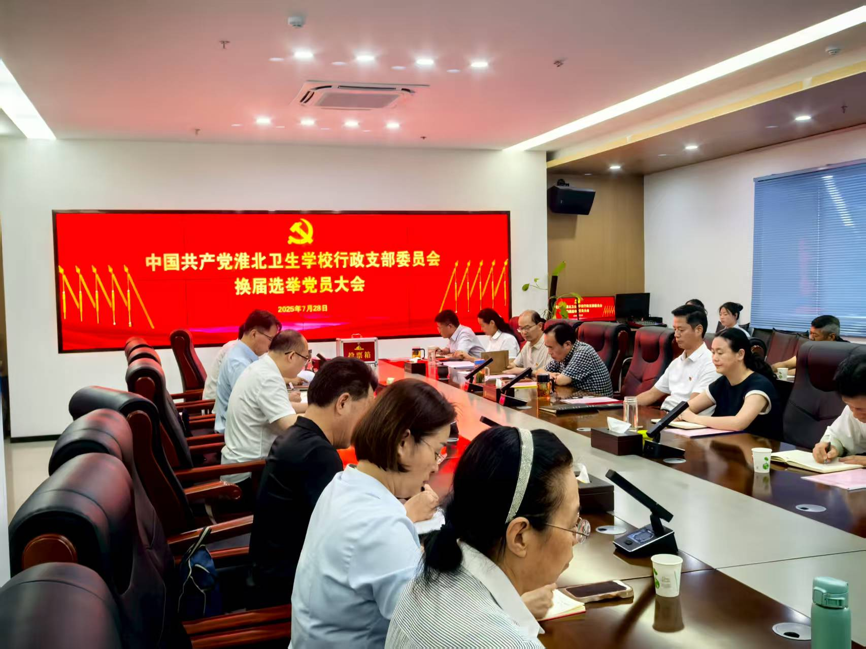 2025年7月28日上午,中共安徽省淮北卫生学校行政支部委员会换届选举党员大会在庄严的国歌声中于养德楼大会议室隆重召开。本次大会应到党员33名,实到党员30名,符合法定人数,会议由行政党支部宣传委员张伟主持。