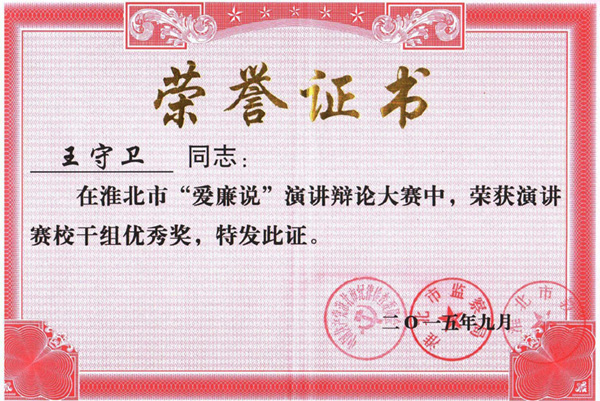 王守卫获全市“爱莲说”演讲比赛优秀奖
