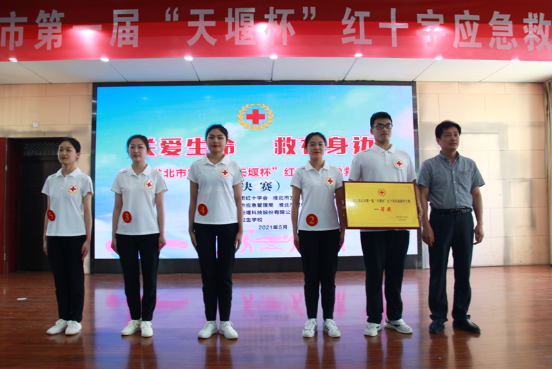 5月30日,由淮北市红十字会联合市文明办、市教育局、市应急管理局、市卫生健康委共同主办,淮北卫生学校承办的淮北市第一届“天堰杯”红十字应急救护大赛在淮北卫校举办。大赛主题为“关爱生命、救在身边”,来自全市7支代表队参加比赛。安徽省红十字会赈济救护部部长张本该、省红十字应急救护培训指导中心负责人以及淮北市红十字会、市文明办、市教育局、市应急管理局、市卫生健委有关负责人等出席活动。
